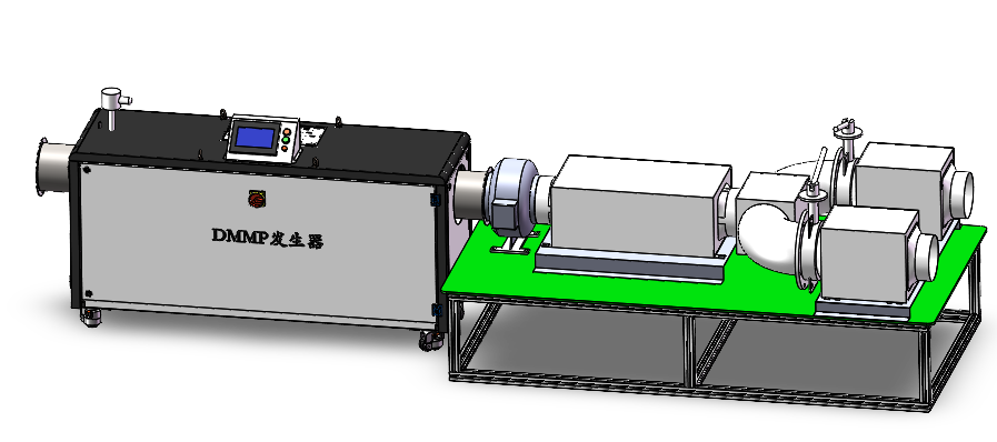 本设备产生化学战毒剂的模拟剂DMMP(甲基膦酸二甲酯) (1) 针对所需的风量和目标DMMP浓度,产生所需DMMP混合气体; (2) 基于碳管称重法,提供DMMP浓度检测所需的伴热采样和增湿平衡气功能;