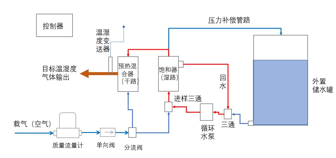 请对输出管道进行控温,确保温度和湿度发生器设定温度一致即可。